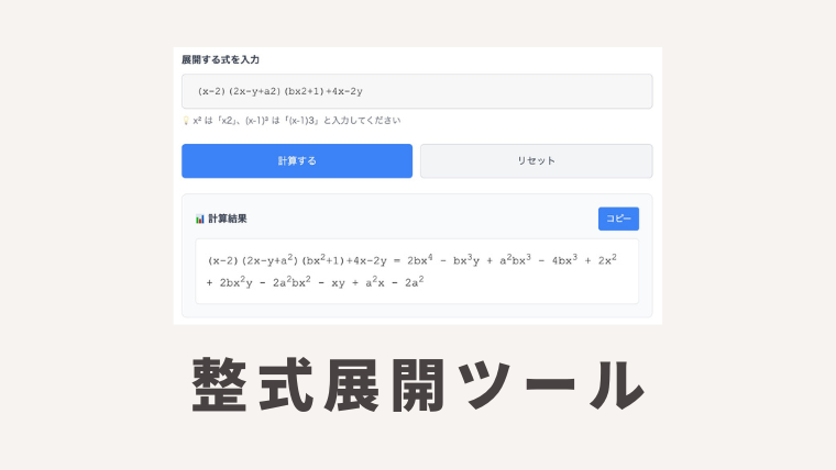 整式展開ツール【無料】多項式を自動計算・答え合わせに